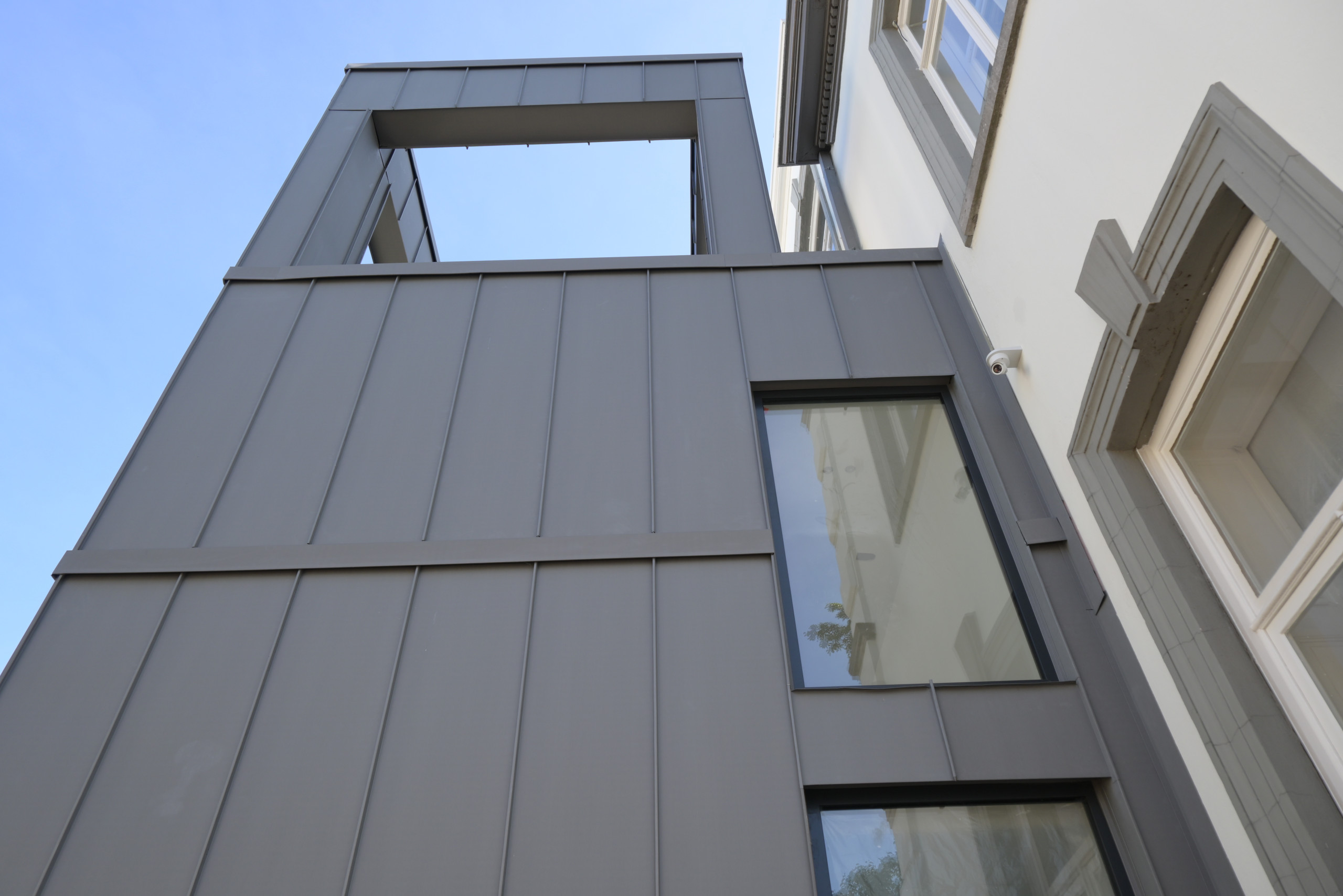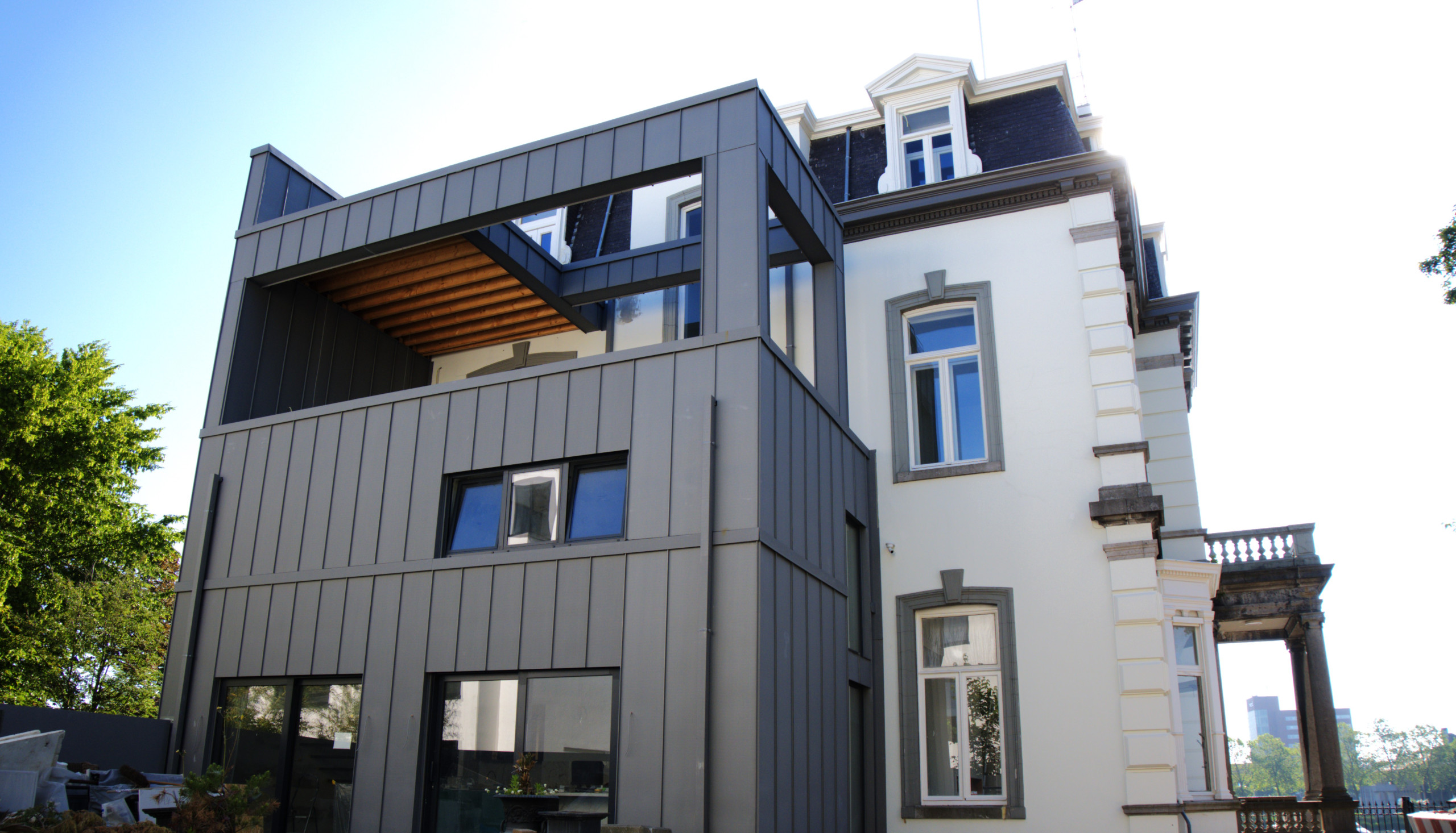 Het project bedraagt 275m2 felsbanen VM Quartz met maatwerkkappen en klangensysteem. Dit project is gemaakt als ventilerende constructie met vuren latten en folie, afgewerkt met diverse gevels en boeiboorden. Het project is medio mei 2022 gestart en afgerond in augustus 2022 met dit prachtige eindresultaat. Dat de foto’s nu pas worden gepubliceerd heeft te maken met de lange looptijd van het totale project van dit prachtige pand.