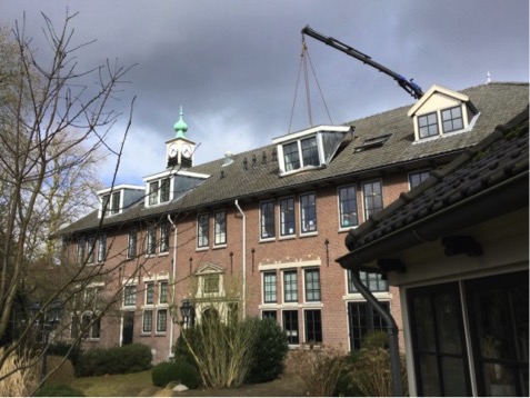 Bij aankomst van het zinkwerkteam in de productiehal van Topkapel stonden de acht dakkapellen al klaar om te worden voorzien van de losanges. Na een aantal dagen zagen, knippen en monteren van de bijna 900 losanges waren de dakkapellen klaar voor transport. Daarna zijn deze dakkapellen middels de unieke hijsconstructie van Topkapel, in een volledig afgewerkte staat, snel en vakkundig op het dak van het Rijksmonument in Alphen aan de Rijn geplaatst.