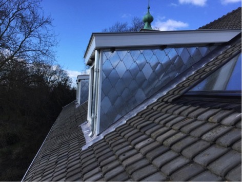 Eén van de wensen omtrent dit unieke project was dat de zijwangen van de dakkapellen moesten worden voorzien van losanges in zink 16 (1,1mm dik). Door deze wens is een mooie samenwerking tussen Brouwers Zink en Topkapel ontstaan. In samenspraak met Dhr. Melsen hebben we als Brouwers Zink de contacten gelegd tussen een erkende zinkwerker en Topkapel.